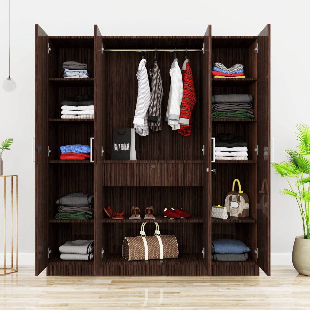 + Free ShippingA modern 4-door wardrobe featuring ample storage space, multiple compartments, and a sleek design that blends functionality with aesthetics.