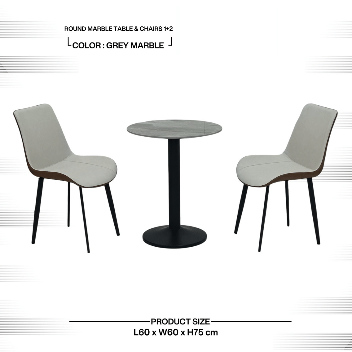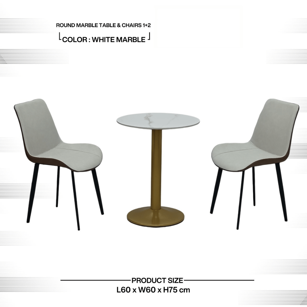 This stunning set includes a round dining table and luxurious chairs, adding a touch of opulence to any dining space.