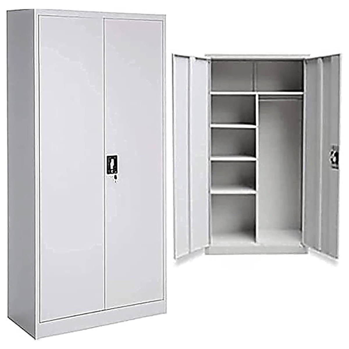A robust and versatile steel two-door cupboard designed for secure and organized storage. Its durable metal construction ensures long-lasting use, making it ideal for home or office spaces.
