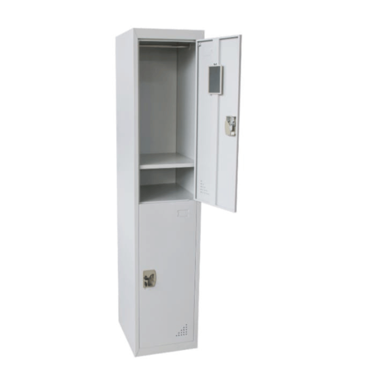 Durable two-tier steel cabinet for secure storage.