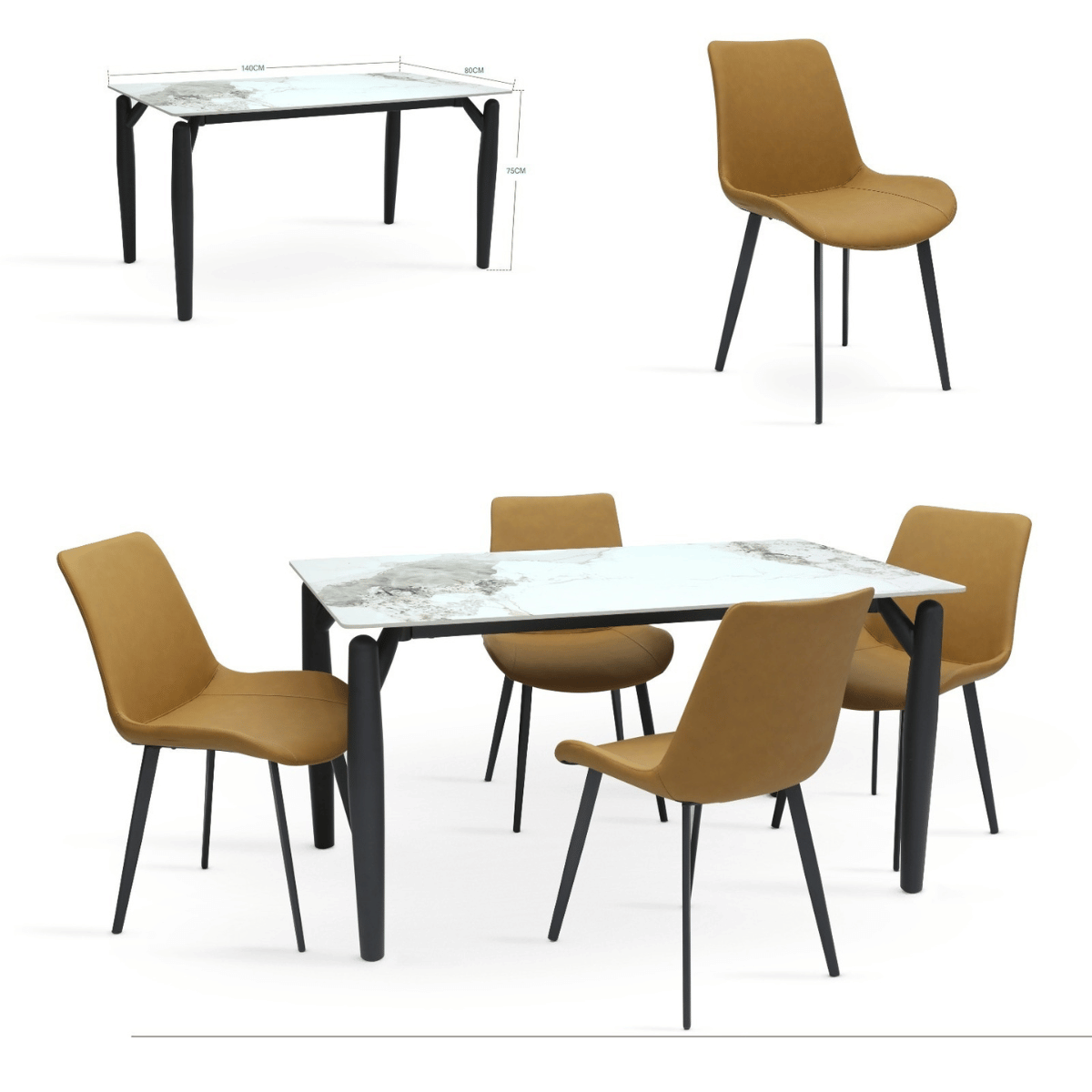 + Free ShippingThis sleek and modern dining table comes with a rectangular table and vibrant yellow cushioned chairs, adding a pop of color and style to any dining room.