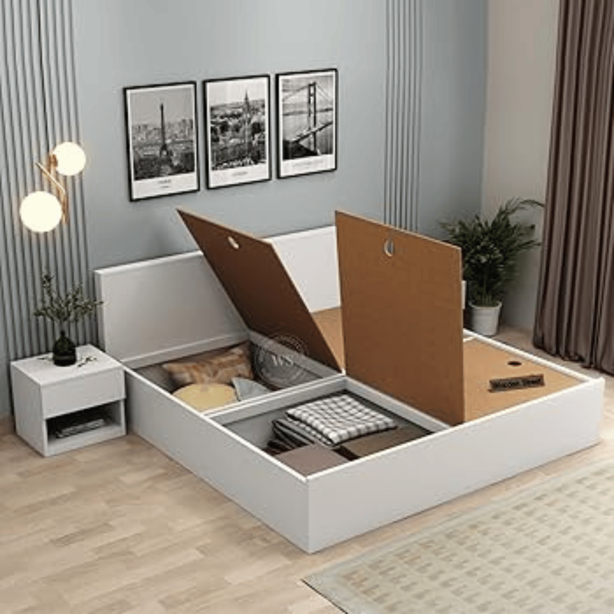 Wooden storage bed with built-in drawers. Available in King and Queen sizes.